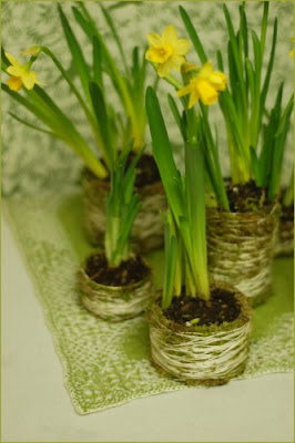 Küçük saksı ve sarı çiçekler